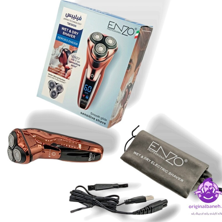 ریش تراش انزو اصل اورجینال ENZO 9308 سازنده شرکت فلیپس ضداب و زیر دوشی بدنه ضد خط خش دیجیتالی نمایشگر ال ای دی