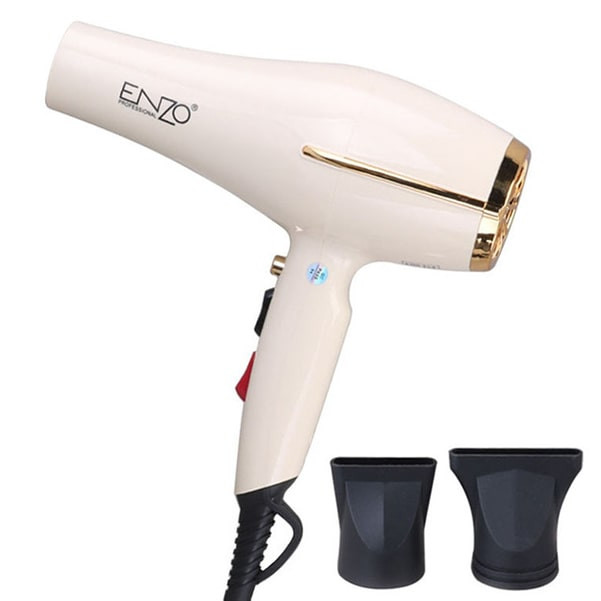 سشوار حرفه ای انزو ایتالیا PROFESSIONAL ENZO تولید کننده یون مثبت المنت روکش سرامیکی قدرت متور 8800وات تک رنگ مشکی طلای خنک ک