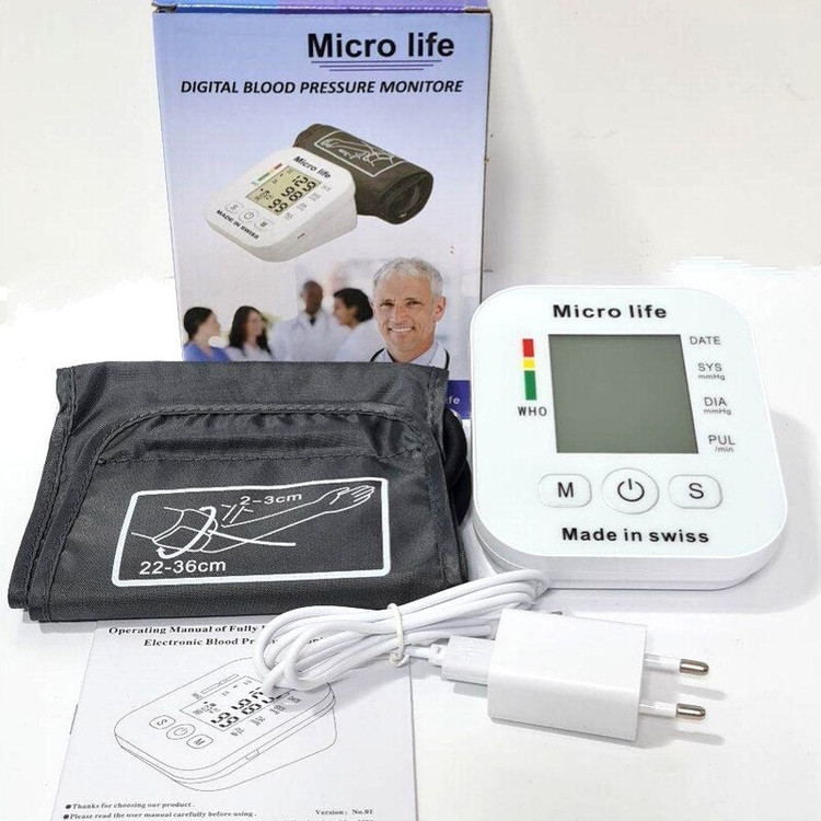 میکرو لایف Micro life 2023 ساخت سویس مانیتور دیجیتال فشار خون دیجیتالی سخن گو فارسی بازوی و نمایشگر دقیق مانیتور الکترونیکی فشار خون کاملاً اتوماتیک Arm Style صفحه نمایش کریستال مایع دیجیتال حالت اندازه گیریر وش نوسان سنجی محدوده اندازه گیریف فشار: 0 kPa-37.3kPa (0mmHg-280mmHg) دقت نبض: 40-199 بار در دقیقه فشار استاتیک: ± 0.4 کیلو پاسکال (+ 3 میلیمتر جیوه) نبض: در ± 5٪ وضوح0.1 کیلو پاسکال (ImmHg) منبع تغذیه:برق مستقیم خانگی و DC 5V (1.5V چهار باتری AAA) دما و رطوبت ذخیره سازی دما: -20℃~55℃ رطوبت: 10٪ ~ 85٪ RH استفاده از دما و رطوبت د ما: 5℃~40℃ وزن رطوبت: 15٪ ~ 85٪ RH حدود 200 گرم (به استثنای باتری) ابعاد 117mm×100mm×59mm (L*W*H) لوازم جانبی گنجانده شده است کارت گارانتی، گواهی، بازوبند، کیسه ذخیره سازی دفترچه راهنمای محصول سبک پرایم-با نور پس زمینه و عملکرد صدا یادداشت: سبک گسترده - با عملکرد صوتی سبک پایه - بدون توابع بالا سلامتی بهتر ارزوی ماست از روش ها و اقدامات احتیاطی استفاده کن قبل از اندازه گیری آرامش خود را حفظ کنید و برای یک ماه آرام بنشینید کف دست ها را بالا ببرید، بند مچ را موازی با قلب قرار دهید کف دست ها را بالا ببرید، لوله ورودی و شریان ها را موازی نگه دارید