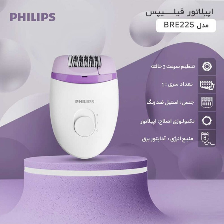 اپیلاتور فیلیپس مدل PHILIPS BRE225 مارک فلیپس شرکتی موچین نانو ضد زنگ سری قابل شستشو منبع تغذیه برق میتقیم بدنه پلاستیک