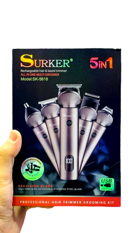 ماشین اصلاح ست کاما سورکر اورجینال SURKER2024 اورجینال و شرکتی دو سال گارانتی ماشین اصلاح پنج منظوره 1-سری حجم زن برای اصلاح سر و سایز بندی با تیغ استیلی ضد زنگ قابل شستشو سری بهترین گزینه برای اصلاح موهای پرپشت و سایه زنی 2-سری خط زن و صفر برای اصلاح صورت و بدن و کل بدن ضد حساسیت با تیغ استیلی ضد زنگ و سری قابل شستشو قدرت دور تیغ 6400 در ثانیه 3-دماغ زن گوش زن قابل استفاده برای اصلاح موهای بینی و گوش تیغ تیتانیومی ضد حساسیت و تیغ قابل شستشو 4-میکروتاج قابل استفاده برای کوتاه کردن موهای بغل سر و دور گوش با تیغ استیلی ضد کند شدن 5-شیور زن یا سری غلطکی قابل استفاده برای شیش تیغ کردن موهای ریش و بدن ضد حساسیت و توری محافظ پوست