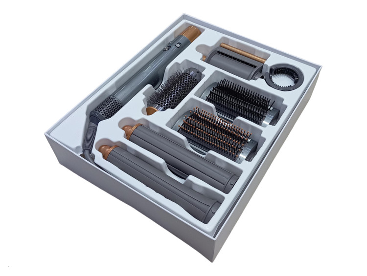 اجزای شامل لوله بلند 1.2 اینچی Airwrap™ برای ایجاد فرهای شل و پرانرژی یا امواج در هر دو جهت، مولتی استایلر Dyson Airwrap™، خشک کن صاف کننده Coanda، خشک کن صاف کننده 2 در 1 Coanda برای خشک کردن، صاف کردن و مخفی کردن پرزها³، بشکه بلند Airwrap™ 1.6 اینچی برای ایجاد ضایعات پرحجم در جهت بدنه و ایجاد انحناهای بزرگ در جهت بدنه به موها هنگام خشک شدن، برس تمیزکننده فیلتر برای تمیز کردن سریع فیلتر Dyson Airwrap™، کیف ذخیرهسازی برای محافظت و نگهداری منظم مولتی استایلر و ضمیمههای Dyson Airwrap™. به رنگ آبی پروس، پوشانده شده با پارچه نرم و با درب قابل جابجایی که همچنین یک تشک ضد لغزش برای Airwrap™ شما است، برس صاف کننده محکم برای صاف کردن و کنترل فرها بدون آسیب حرارتی و افزایش جریان هوای کوآندا برای مدلهای صاف، برس صاف کننده نرم برای تراز کردن ملایم و صاف کردن موها با افزایش کنترل برای حالتهای صافتر