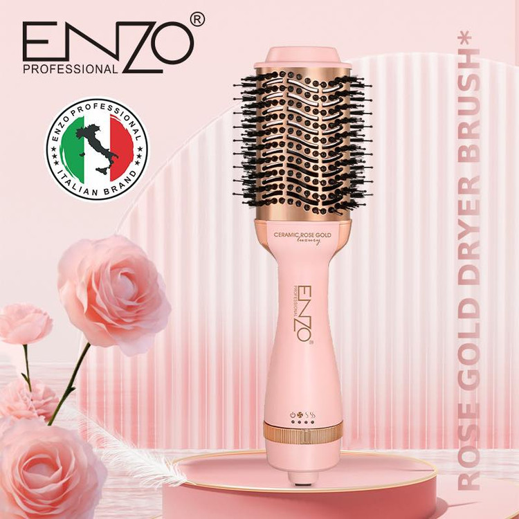 سشوار برس گرد ثابت ENZO مدل EN-6209 یک دستگاه کاملا متفاوت و جدید است. این دستگاه دارای طراحی متفاوت و شیک است و در رنگ صورتی در بازار موجود می باشد. این دستگاه در واقع یک سشوار مخصوص خشک کردن و شانه کردن مو است که دارای شانه مخصوص می باشد. سری شانه گرد سشواری برای استایل دادن، براشینگ و حجم دهی و خشک کردن موی سر مورد استفاده قرار می گیرد. همچنین همزمان موی سر را شانه و خشک می کند و برای حجم دهی موهای کم پشت و براشینگ موهای پر پشت بسیار عالی می باشد.