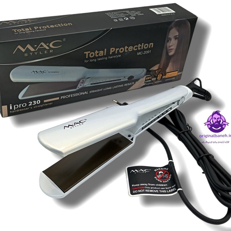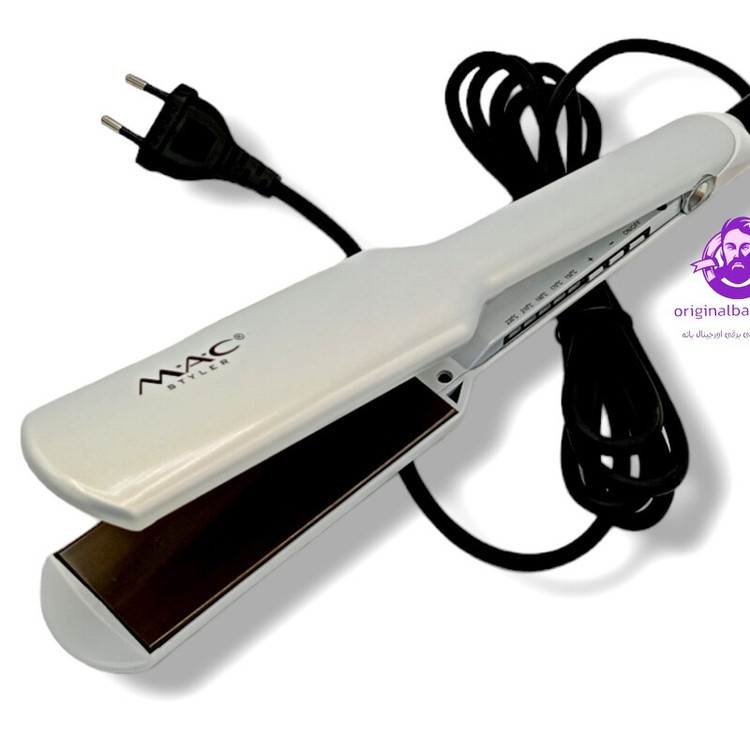 اتو و حالت دهنده ی مو مک ستایلر MAC 20با صفحه سرامیک نانو کروم رنگ سفید صدفی مناسب برای کراتینه تراپی دارای صفحات نا