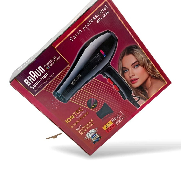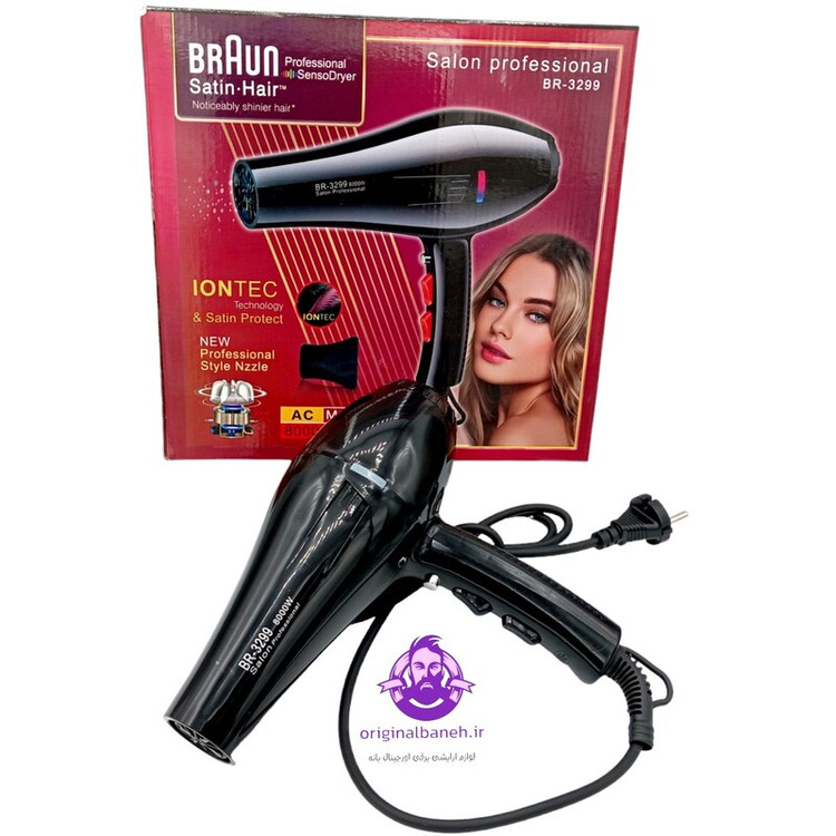 سشوار براون سیم پیچی BRAUN3329 نوع متور سیک پیچی کابل دومتر نیم چهار حالت داغ و خنک دارای دو سری متمرکز کننده هوا این مدل سشوار براون با تکنولوژی پیشرفته برای مصرف خانگی ارائه شده است تا به راحتی بتوانید از موهای سالم خود محافظت کنید و از زیبایی بیشتر موهای خود لذت ببرید. سشوار براون دارای موتور قدرتمند 8000 وات می باشد با پرتاب باد بسیار عالی برای کسانی که پرتاب باد را در انتخاب خرید خود اولویت قرار می دهند. تکنولوژی آیونیک این سشوار براون با تولید میلیون ها یون منفی، باعث می شود که سطح مو با یون پوشیده شود و در برابر گرمای مضر و الکتریسیته ساکن مو محافظت می شود و در زمان کمتری مو را استایل می دهد. ویژگی شاخص این سشوار بهره گیری از تکنولوژی مادون قرمز در پخش گرمای یکنواخت برای خشک کردن یکدست و کارآمدتر می باشد. سشوار براون همراه با سری دیسپانسر برای درست کردن فر طبیعی مو و دکمه کول شات برای فریز کردن سریع حالت مو عرضه شده است. قیمت این مدل سشوار با توجه به این امکانات بسیار عالی می باشد و ارزش خرید بسیار بالایی دارد.