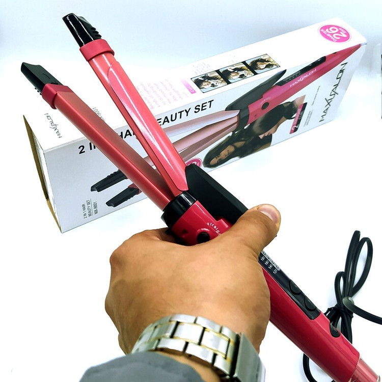 اتومو دو کاره مکس سالن max salon mx-9001 جنس کف سرامیکی ضد موخوره فرکننده سایز متوسط صاف کننده ماندگار دیجیتالی